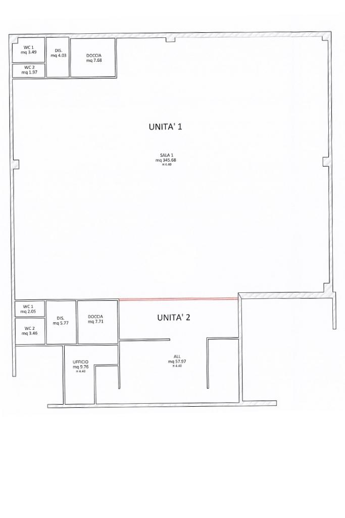 Il negozio misura 385 metri quadrati ed è situato al piano terra. La soluzione ha un’altezza di 4,40 metri, con altezza sottotrave di 4,00 metri, ed è accessibile tramite due portoni, entrambi alti 5,00 metri. Il fabbricato è munito dell’impianto elettrico e quello di illuminazione. Inoltre, è presente il sistema di riscaldamento e raffrescamento. Il fabbricato possiede due servizi igienici a norma di disabili con annessi spogliatoi e docce. Presente una piccola parte esterna di circa 150 metri quadrati ad uso comune.