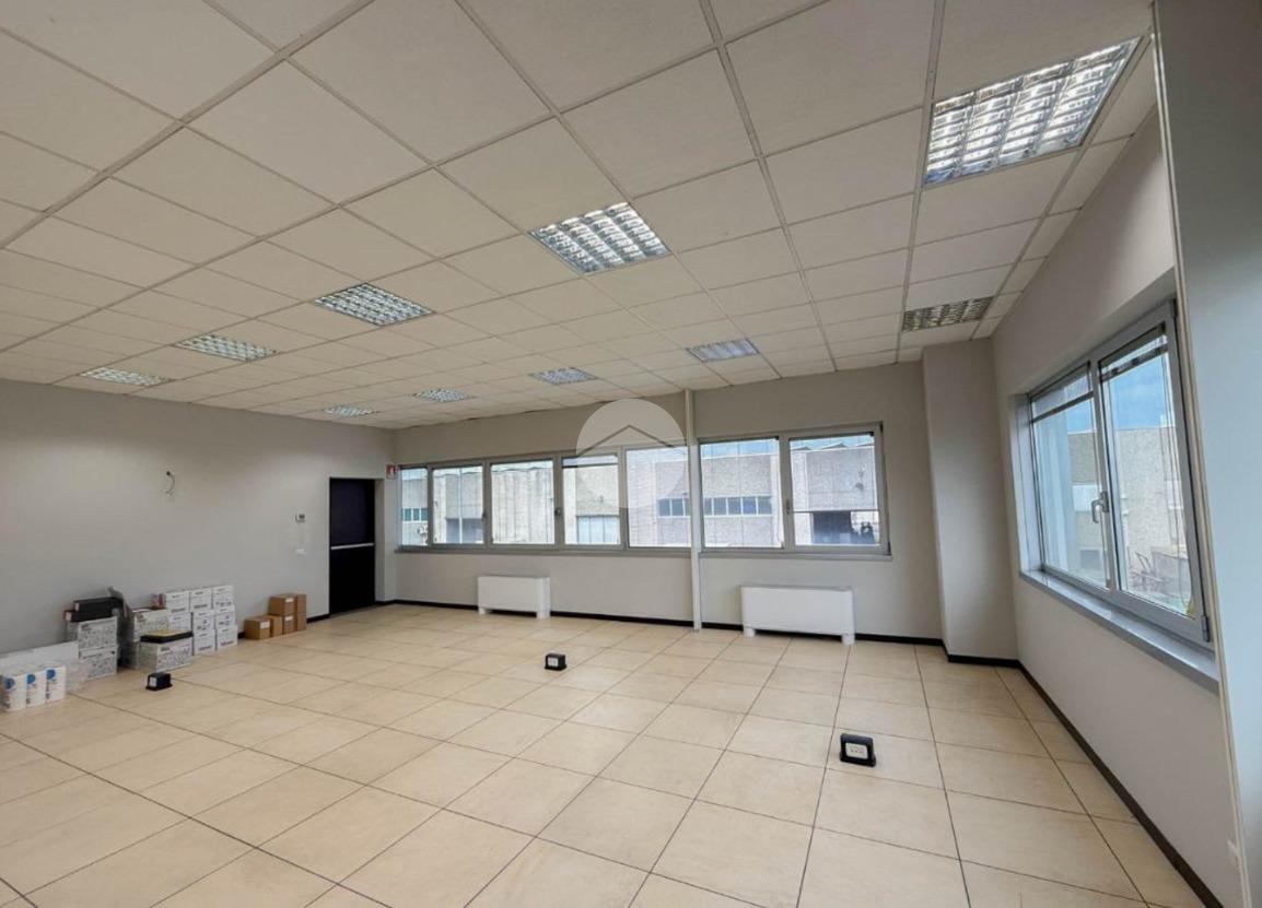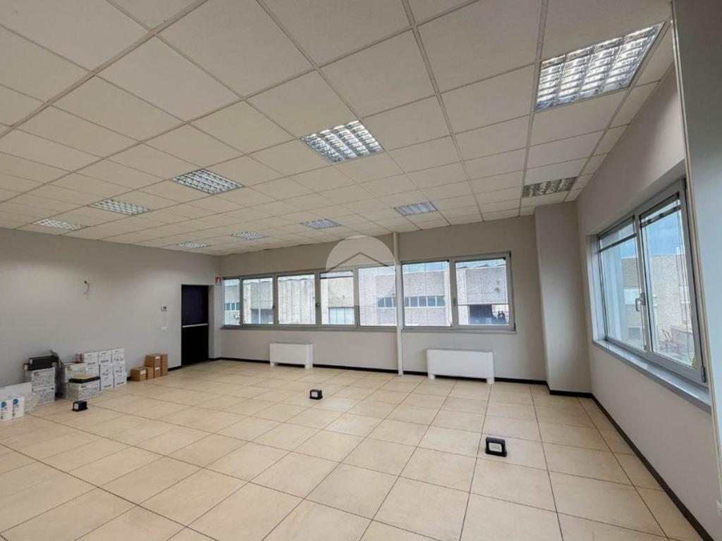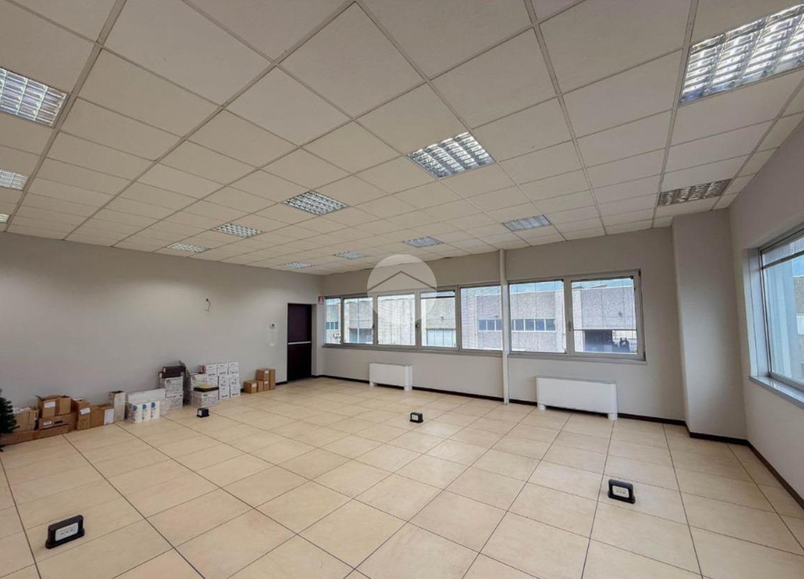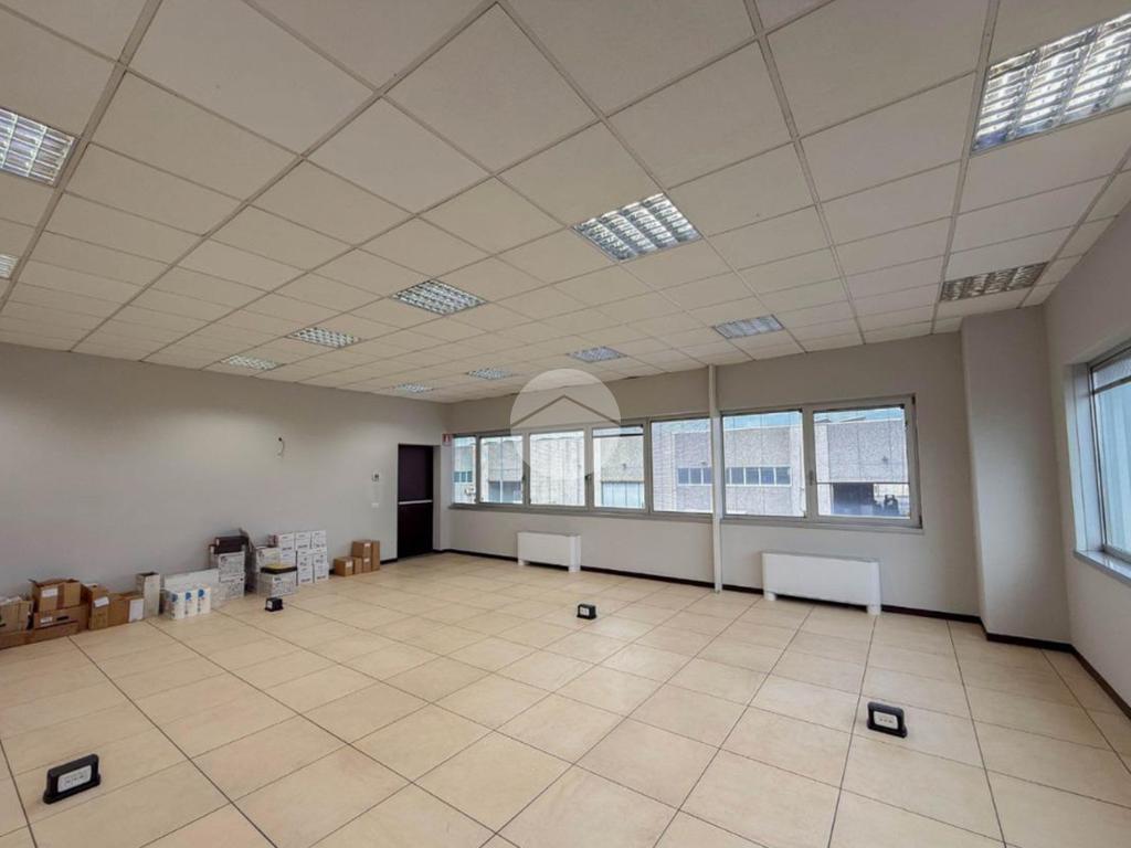 L'ufficio misura circa 80 metri quadrati e si trova al primo piano di una struttura condominiale. La struttura è attualmente un open space e possiede due servizi igienici in comune con altre unità. La soluzione, controsoffittata, è servita dall'impianto di riscaldamento e condizionamento, dall’impianto elettrico e quello di illuminazione. Inoltre, è presente il sistema di allarme e la pavimentazione è flottante. L'ambiente risulta ben illuminato grazie alla presenza di ampie finestre.