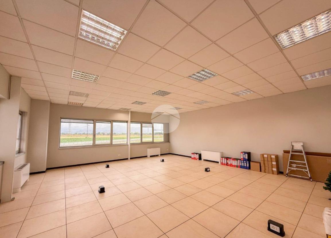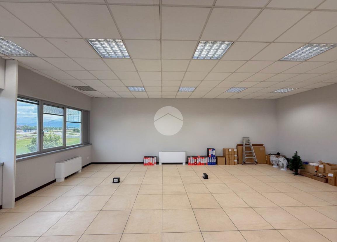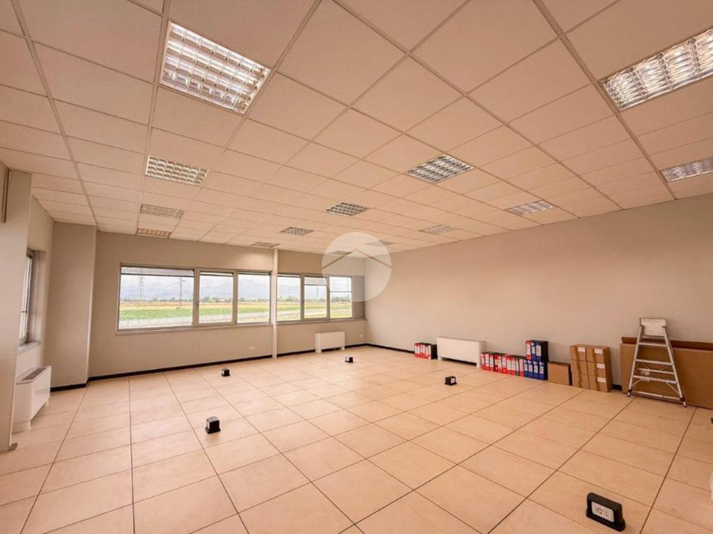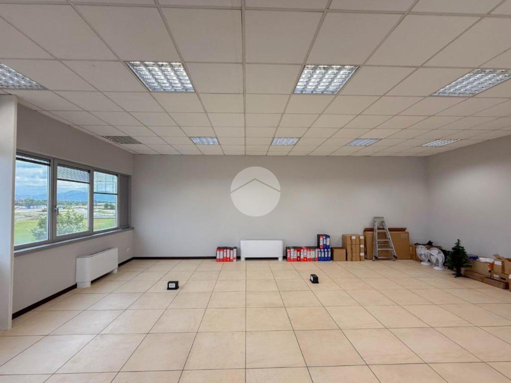 L'ufficio misura circa 80 metri quadrati e si trova al primo piano di una struttura condominiale. La struttura è attualmente un open space e possiede due servizi igienici in comune con altre unità. La soluzione, controsoffittata, è servita dall'impianto di riscaldamento e condizionamento, dall’impianto elettrico e quello di illuminazione. Inoltre, è presente il sistema di allarme e la pavimentazione è flottante. L'ambiente risulta ben illuminato grazie alla presenza di ampie finestre.