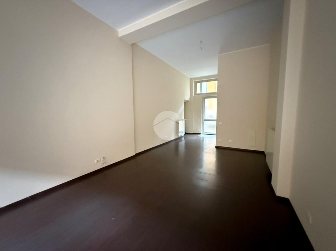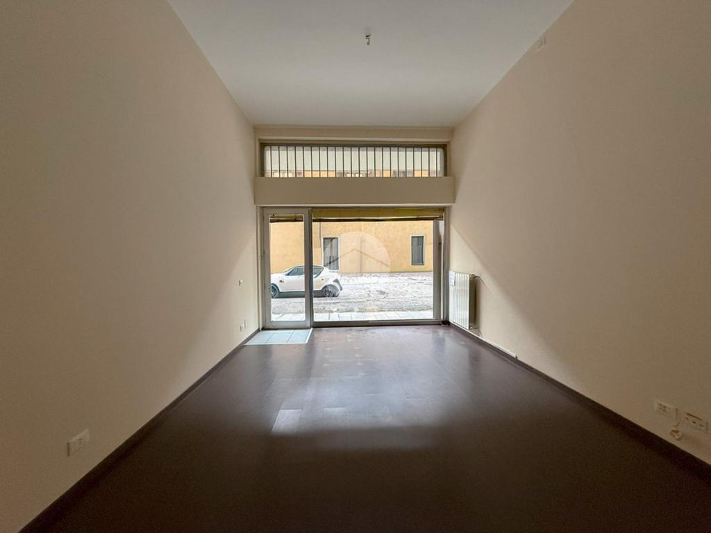 Proponiamo in locazione un negozio con superficie di ca 50 metri quadrati al piano terra di una struttura a quattro piani.