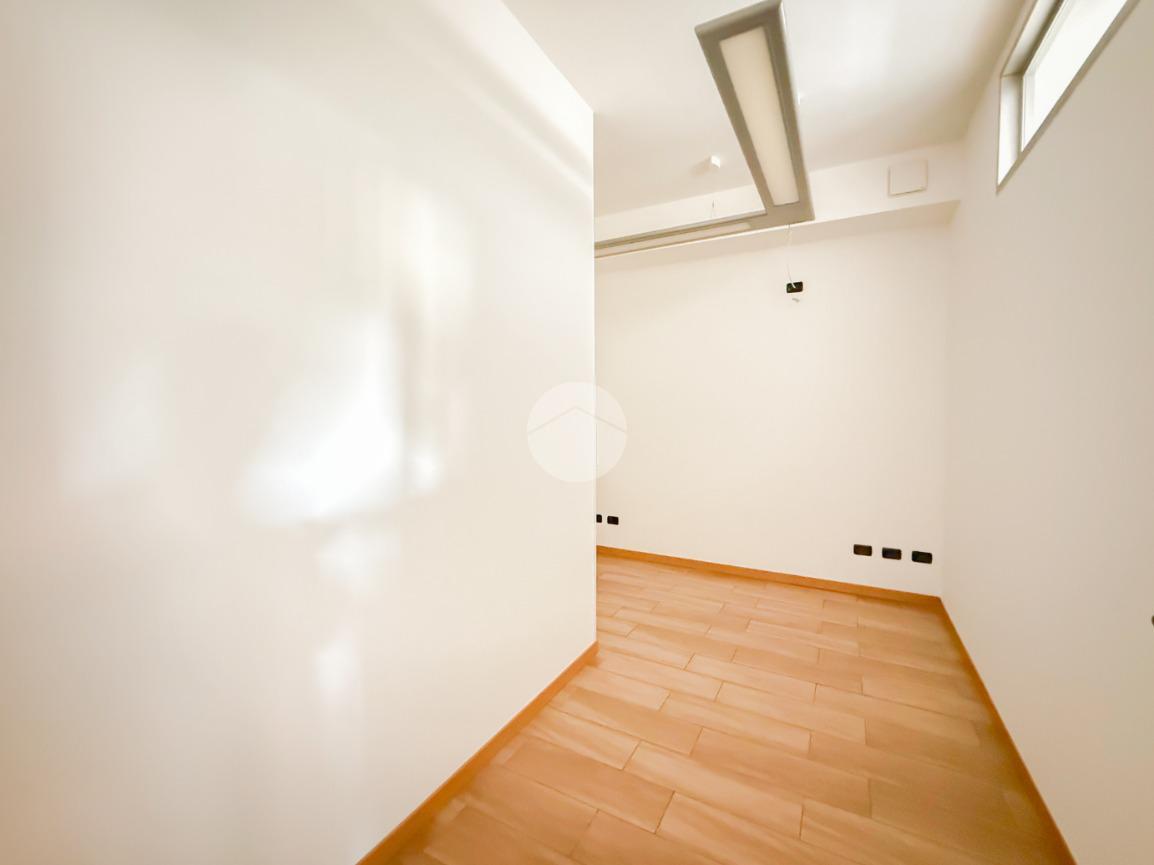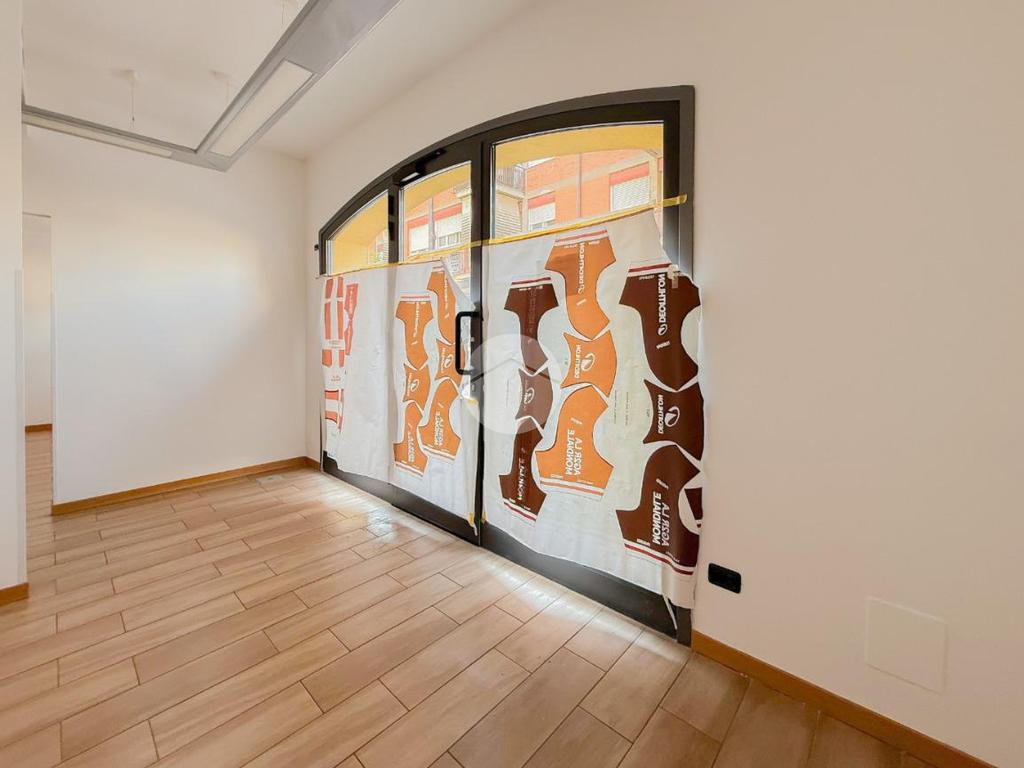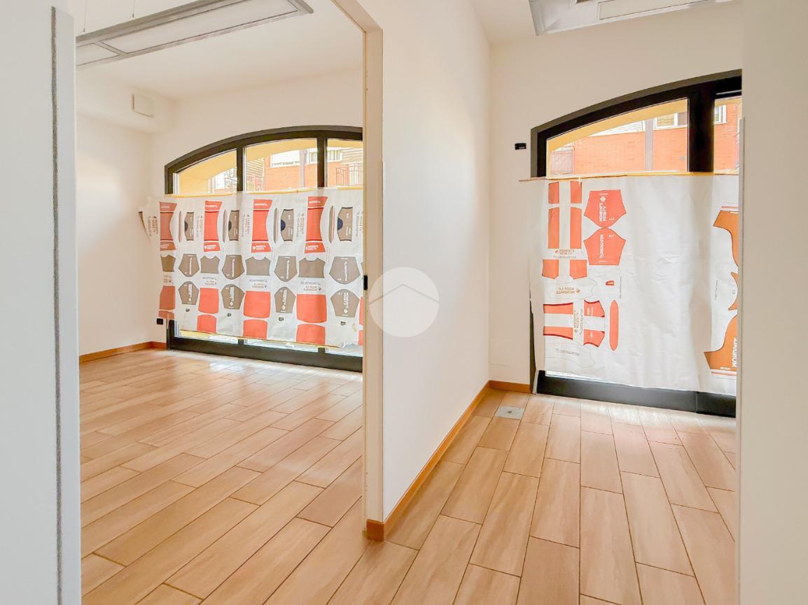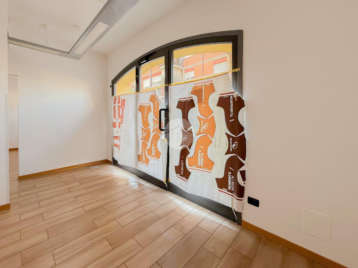 La soluzione ha una superficie di circa 85 metri quadrati, disposti al piano terra. L'ufficio, internamente, è diviso in stanze reso particolarmente luminoso grazie alla presenza di due vetrine. L'immobile è completo degli impianti elettrico, di illuminazione, di riscaldamento e di condizionamento. A completare la soluzione è la presenza di due servizi igienici privati.