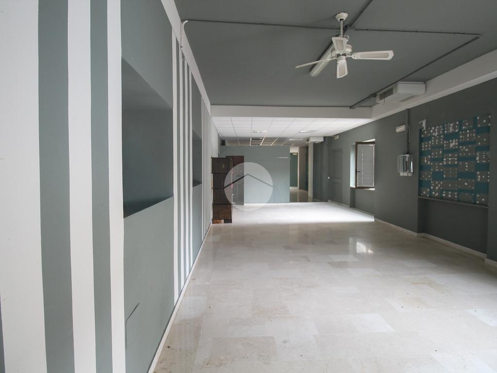 L'ufficio misura ca 140 metri quadrati ed è situato al piano terra di una palazzina. La soluzione è attualmente dotata di un servizio igienico, antibagno e un'ulteriore stanza. L'ambiente è particolarmente luminoso grazie alla presenza di due grandi vetrine, inoltre la struttura è munita dell’impianto di riscaldamento, di condizionamento, elettrico e di illuminazione. L’immobile è dotato canna fumaria e impianto di allarme. Nei pressi del negozio è presente un grande piazzale con numerosi parcheggi pubblici a disposizione della clientela.