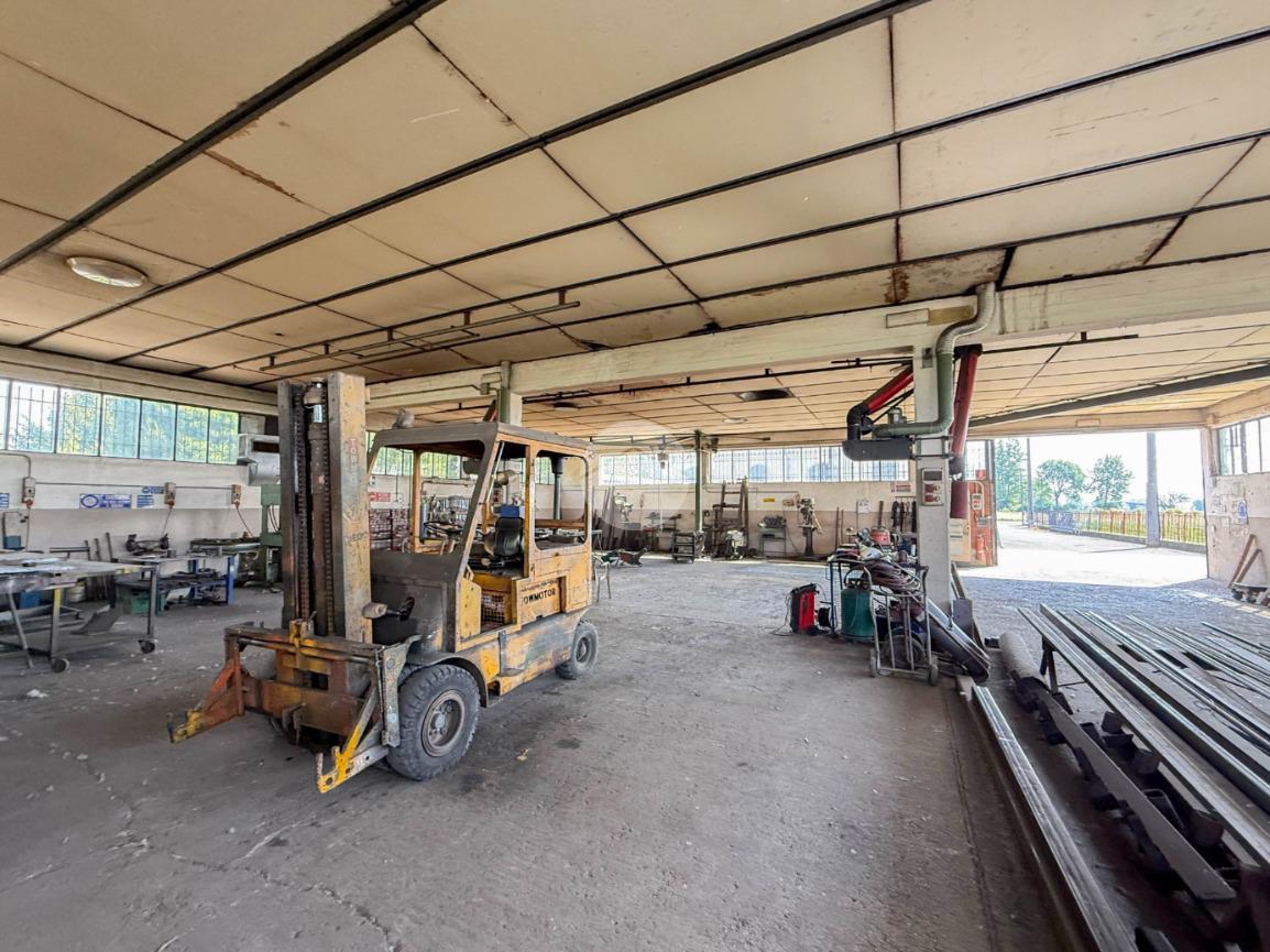 Il capannone misura 400 metri quadrati, di cui circa 15 metri quadrati adibiti ad ufficio. La soluzione si sviluppa lungo un’unica campata, ha un’altezza di 4,00 metri, ed è accessibile tramite un portone alto 4,00 metri. Il fabbricato è munito dell’impianto elettrico e di illuminazione. Negli uffici è presente anche l’impianto di riscaldamento e condizionamento. La struttura presenta tre servizi igienici con spogliatoi e docce. L’immobile possiede tre carroponti a bandiera con portata di: 500 kg, 400 kg e 200 kg. La struttura presenta 1.650 metri quadrati di area esterna, di cui 100 metri quadrati coperti da una tettoia. Il tetto del capannone presenta Eternit, il quale dovrà essere sanato a cura e spesa dell’acquirente.