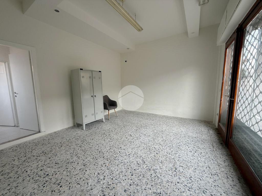 Proponiamo in locazione un negozio con superficie di circa 90 metri quadrati, situato al piano terra di una struttura che si estende su tre piani.