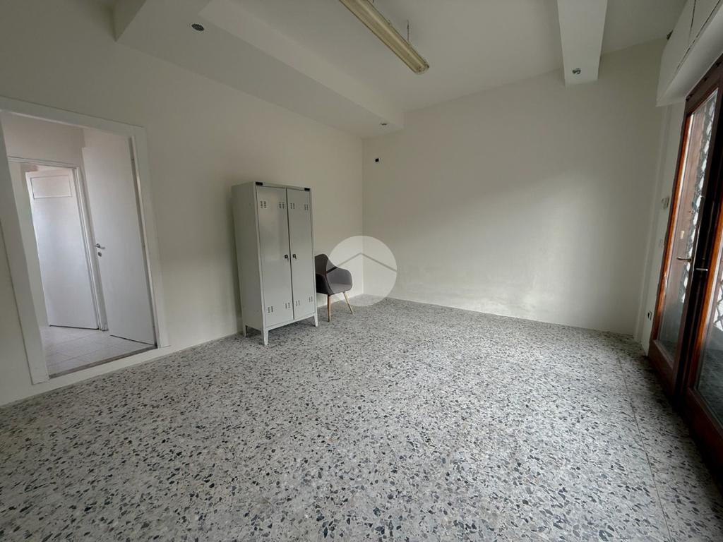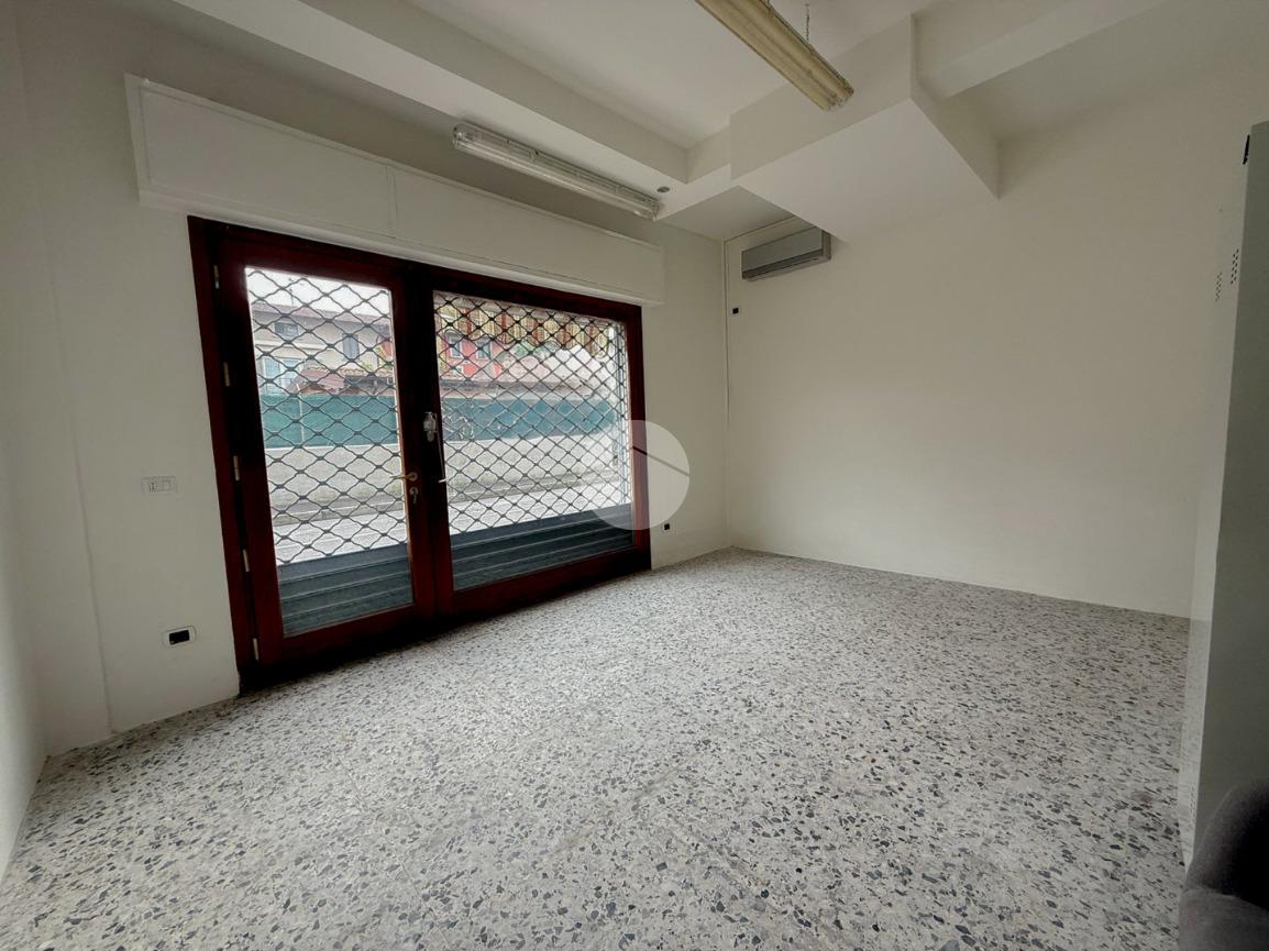 Proponiamo in locazione un negozio con superficie di circa 150 metri quadrati, situato al piano terra di una struttura che si estende su tre piani.