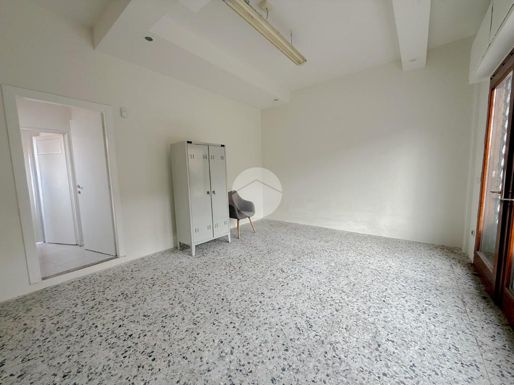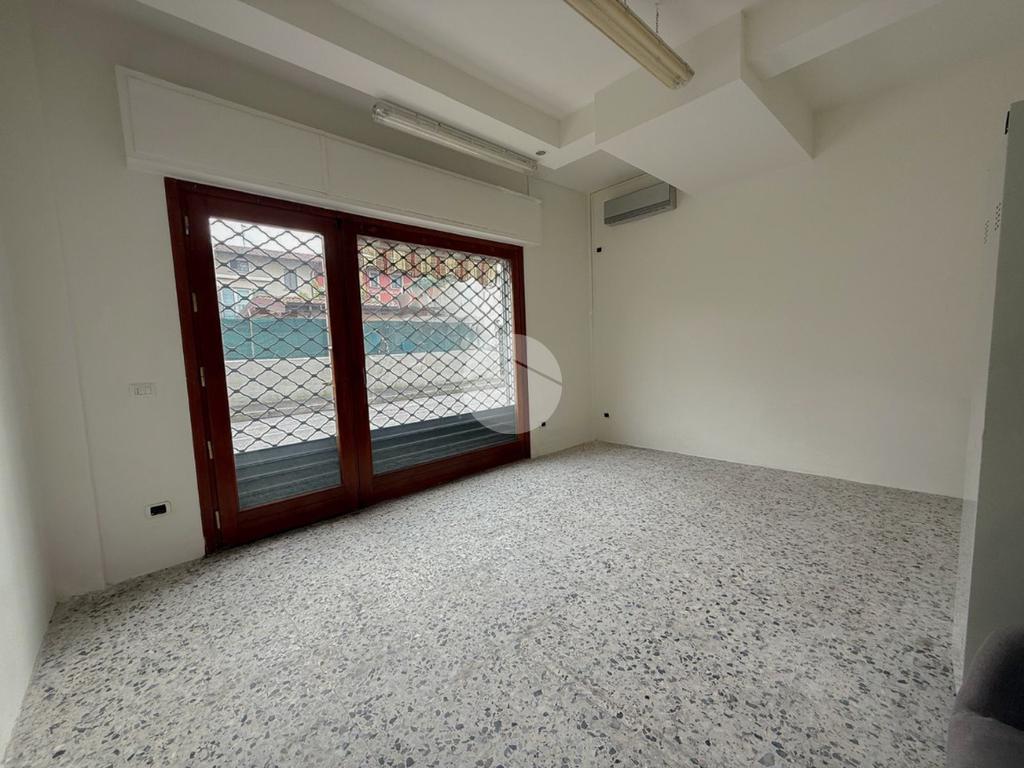 Proponiamo in locazione un negozio con superficie di circa 90 metri quadrati, situato al piano terra di una struttura che si estende su tre piani.