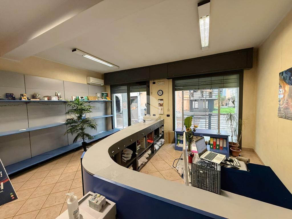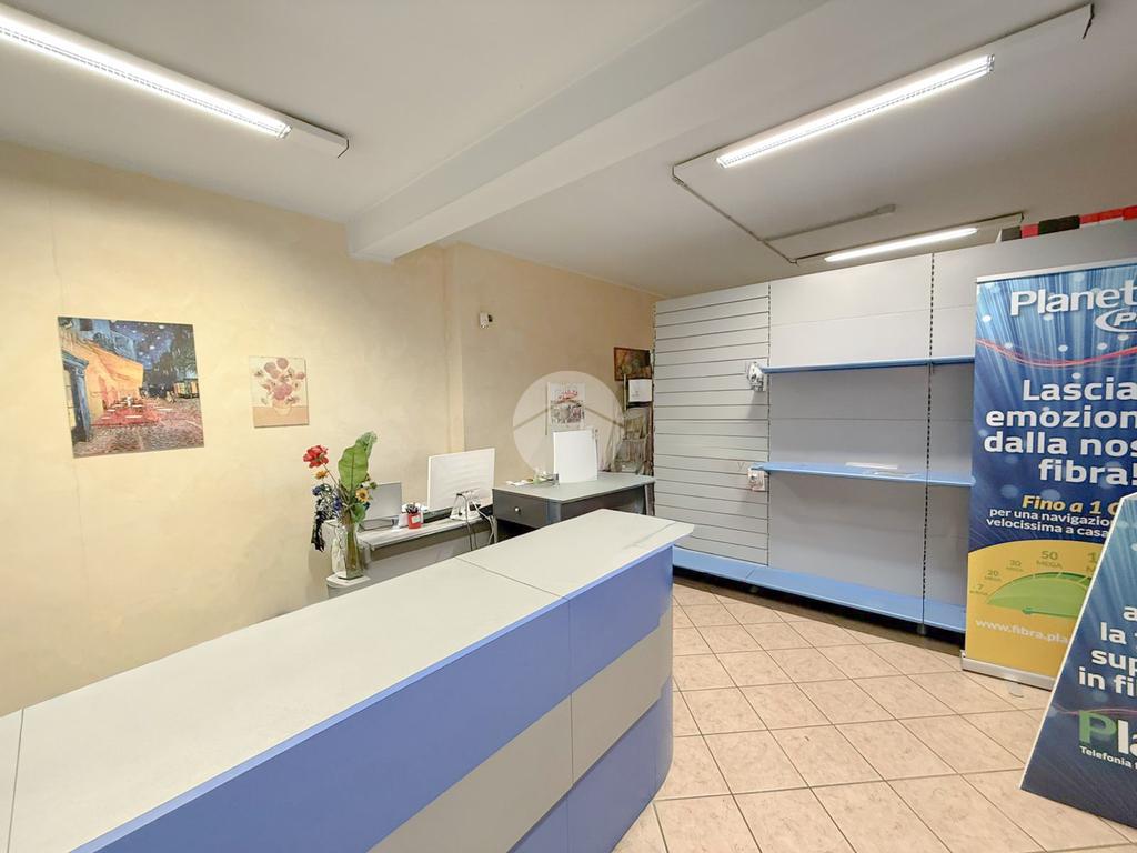 L'ufficio misura ca 85 metri quadrati ed è situato al piano terra di una palazzina. La soluzione è attualmente dotata di un servizio igienico e un'ulteriore stanza. L'ambiente è particolarmente luminoso grazie alla presenza di due grandi vetrine, inoltre la struttura è munita dell’impianto di riscaldamento, di condizionamento, elettrico e di illuminazione. Presente anche il sistema antincendio ad estintori. L'immobile gode inoltre di circa 30 posti auto pubblici e a disposizione della clientela