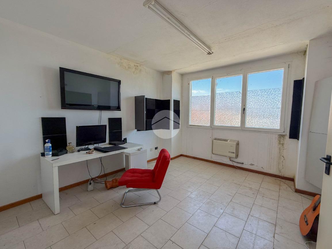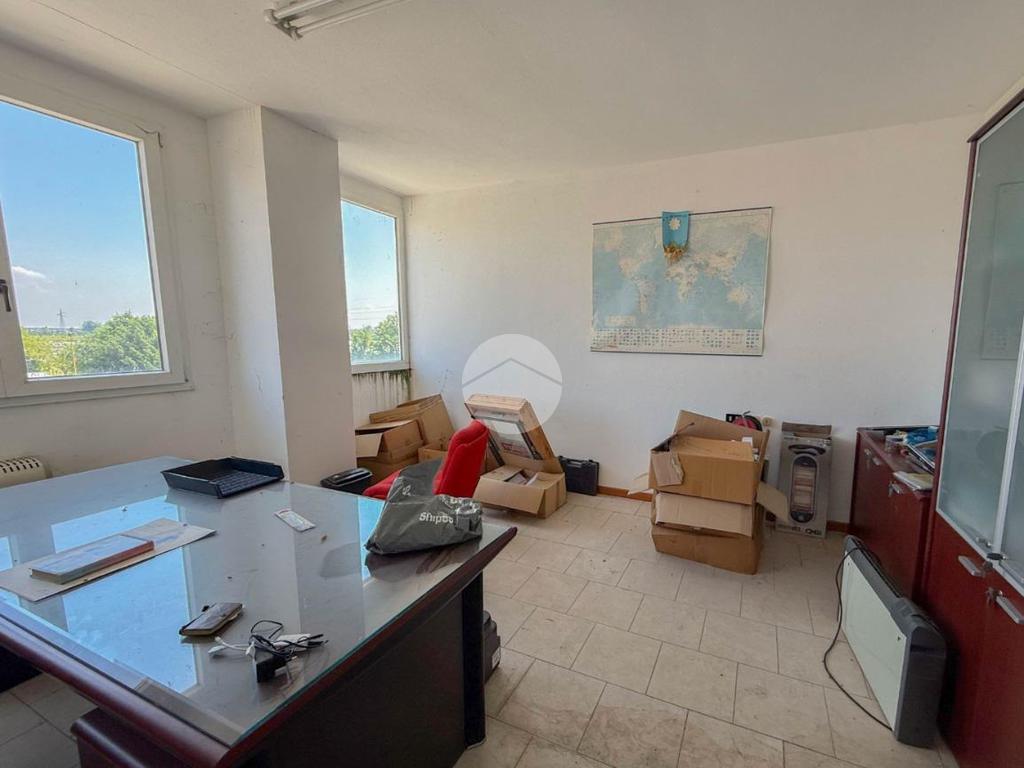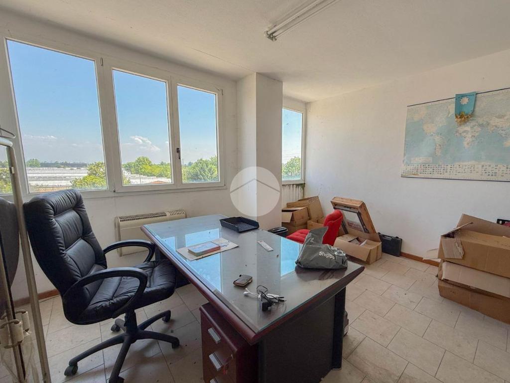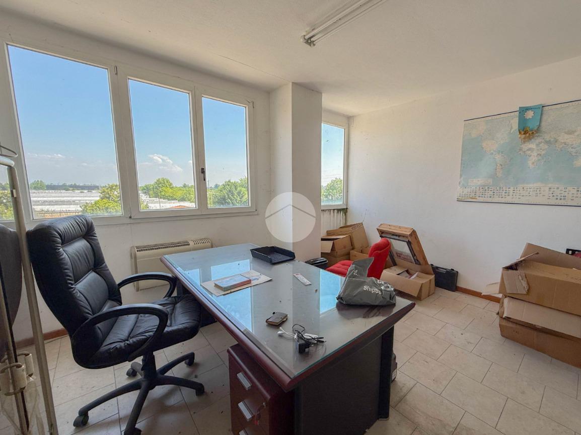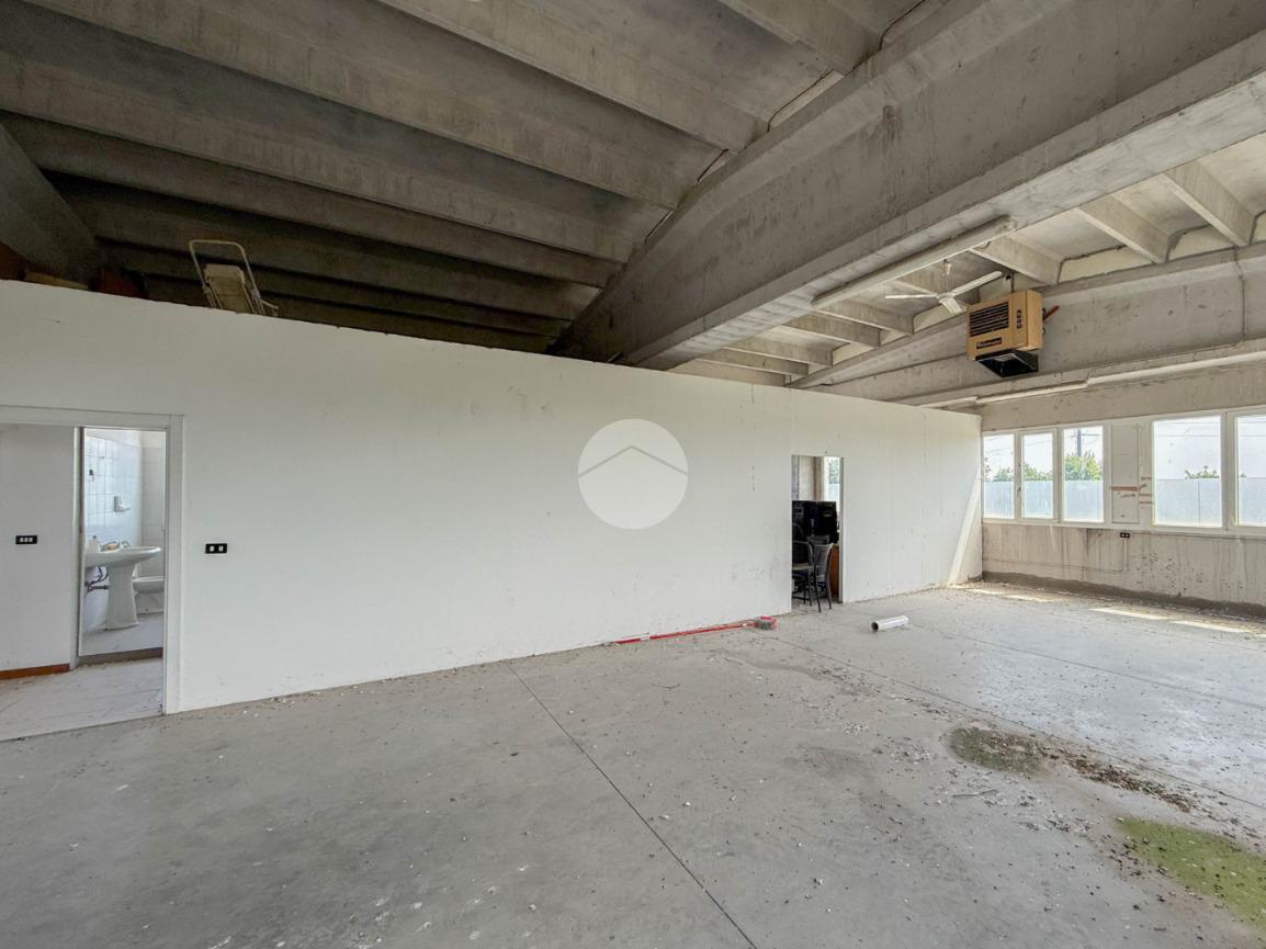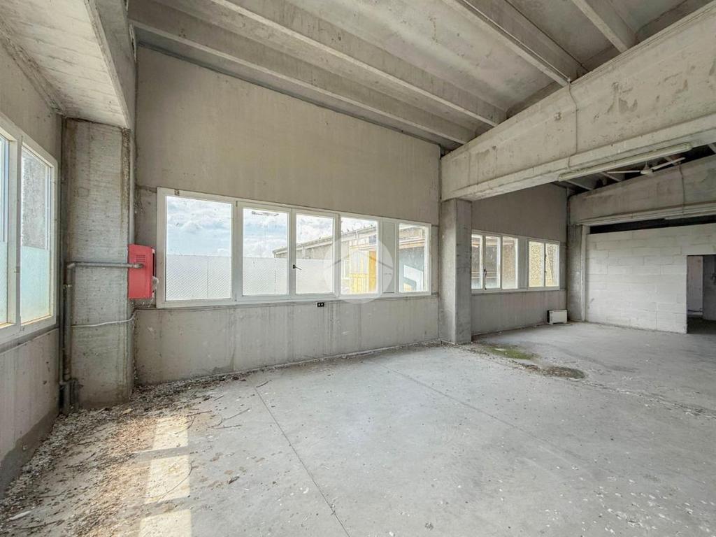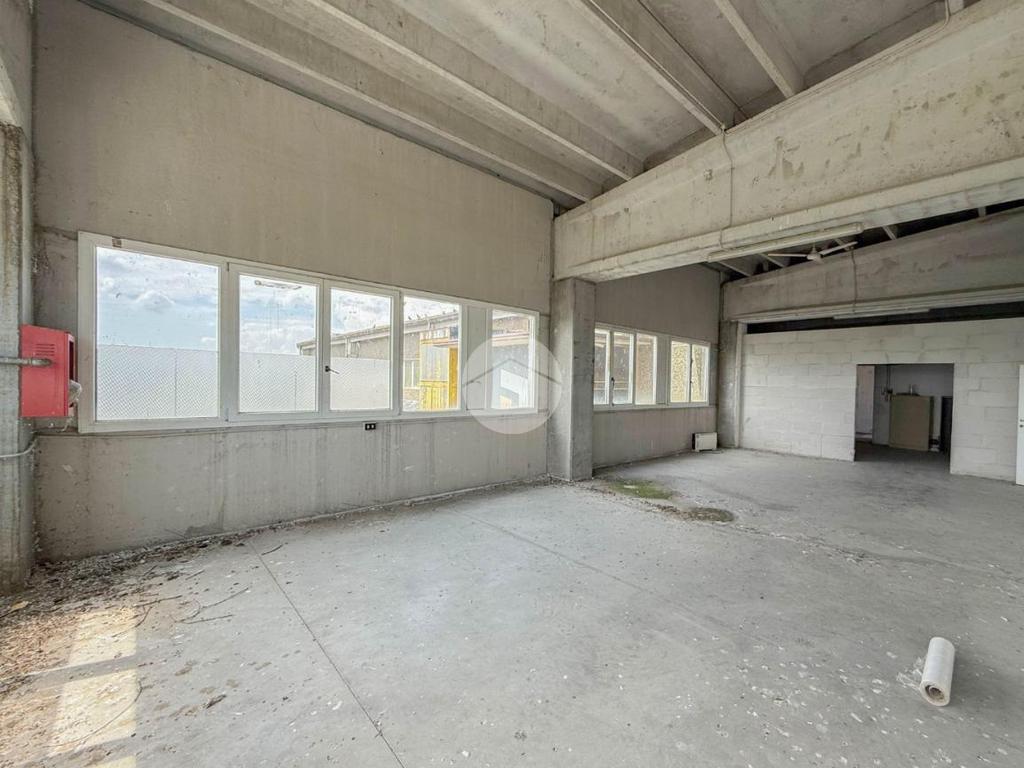 Il capannone proposto in vendita ha una superficie complessiva di circa 200 metri quadrati ed è situato al primo piano di una struttura industriale.