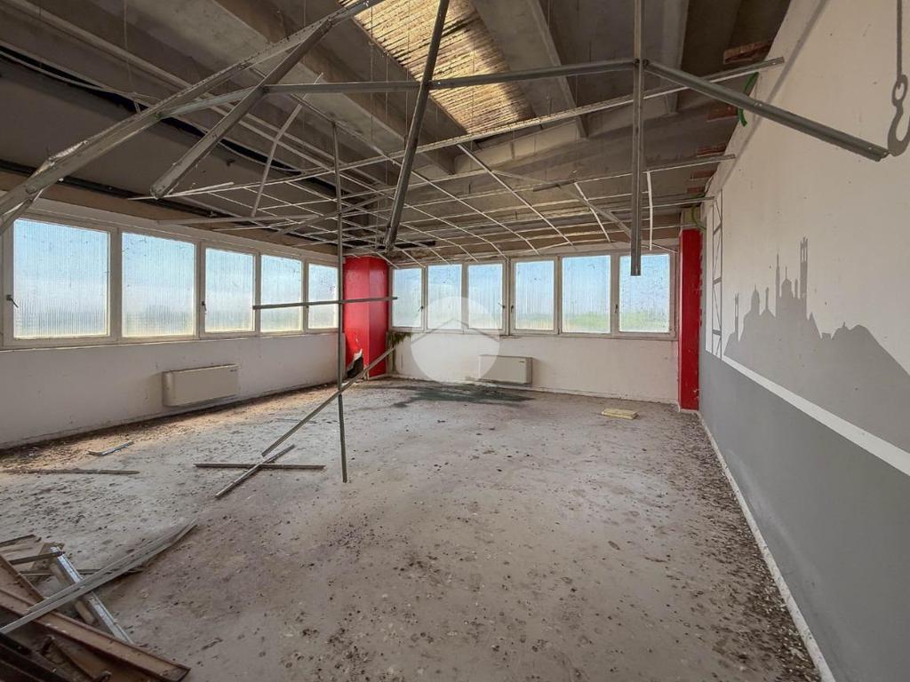 Il capannone ha una superficie calpestabile di circa 600 metri quadrati, sviluppato su due livelli. Il piano terra è costituito da un ampio locale open space interrotto da alcuni pilastri avente un'altezza di circa 6,5 metri; il piano primo è suddiviso in vari ambienti e ha un'altezza massima sfruttabile di circa 3 metri. L’accesso al piano terra avviene tramite un ampio portone, mentre l’accesso al piano primo avviene tramite scala esterna. L’immobile è servito dall’impianto elettrico e quello di illuminazione, i quali hanno necessità di essere revisionati. Inoltre, la proprietà è interamente recintata e ampia area esterna esclusiva. A completare la soluzione è la presenza di due servizi igienici privati provvisti di doccia e spogliatoi.