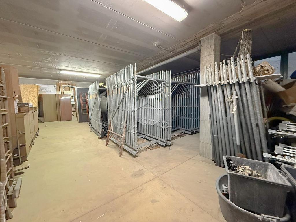 Il magazzino misura circa 230 metri quadrati, è posto al piano interrato. La soluzione si sviluppa lungo un’unica campata, ha un’altezza di 2,80 metri, con altezza sottotrave di 2,80 metri, ed è accessibile tramite un portone alto 2,80 metri e largo circa 3,20 metri. Il fabbricato è munito dell’impianto elettrico e di illuminazione. La proprietà è interamente recintata, presenta un accesso carraio, nei pressi del fabbricato sono inoltre disposti circa 30 posti auto disponibili per la clientela.