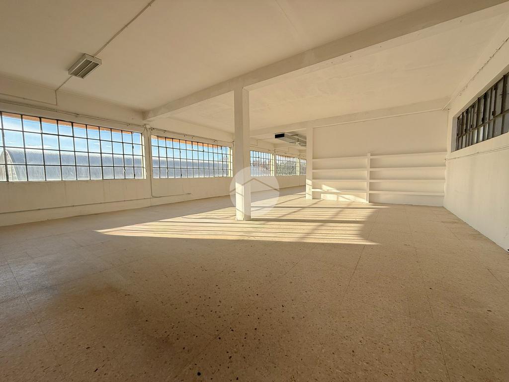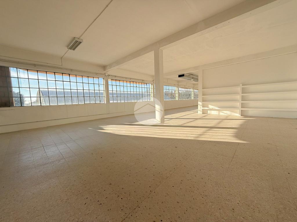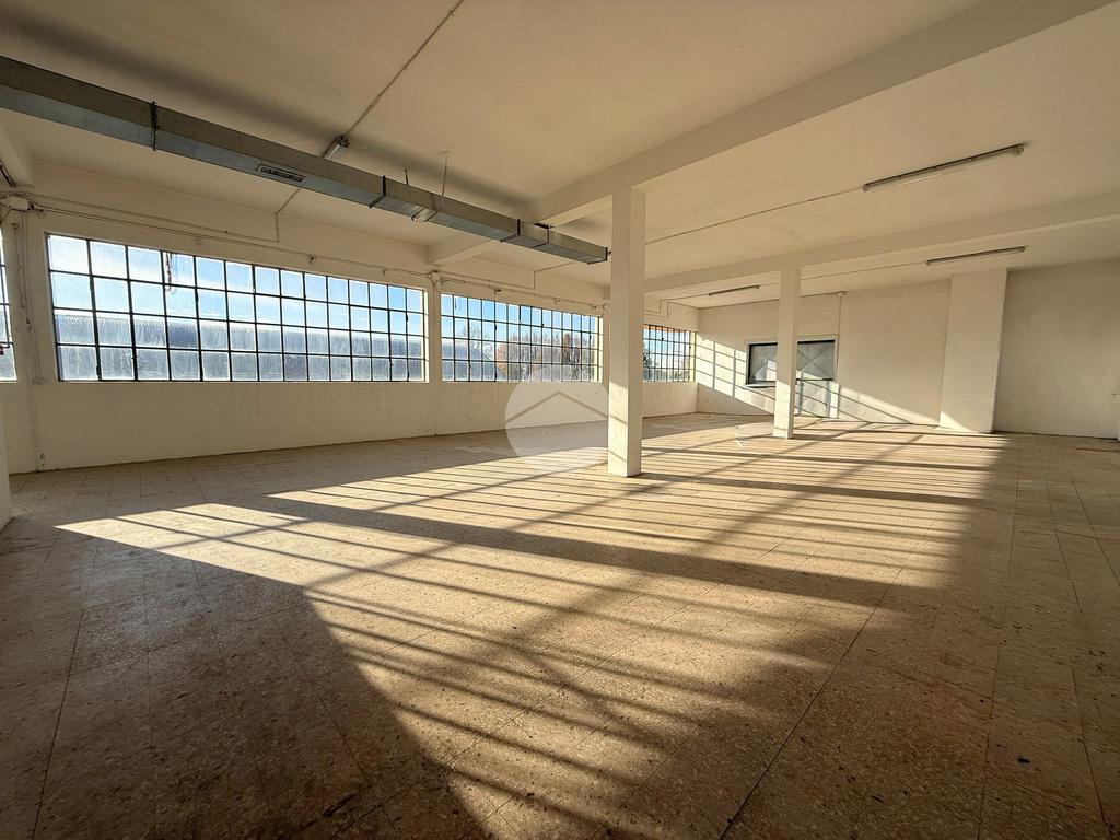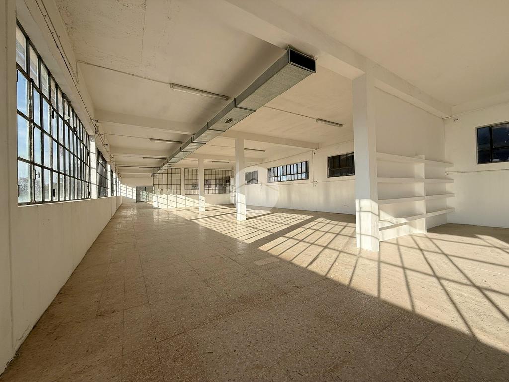Il capannone proposto in locazione ha una superficie di circa 400 metri quadrati ed è situato al piano primo di una palazzina a destinazione industriale.