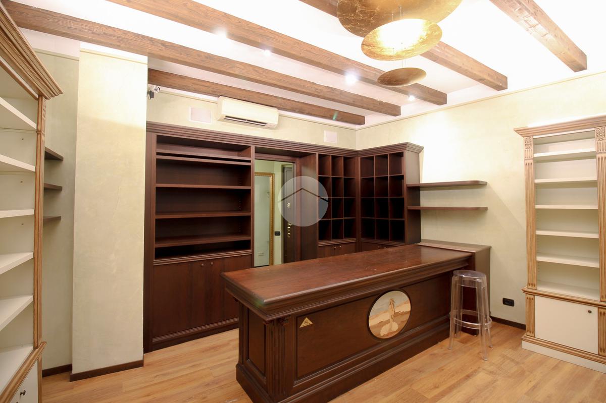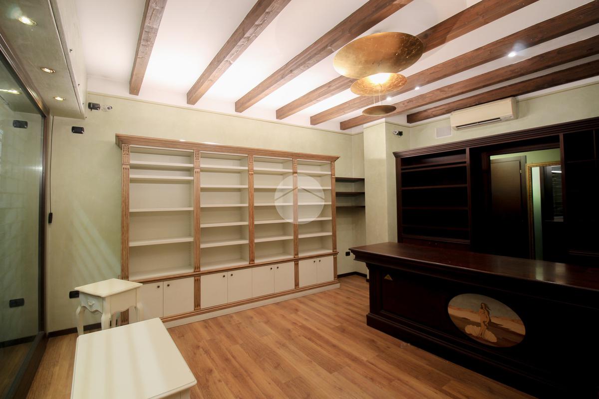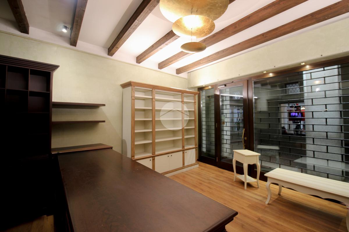 L'ufficio misura ca 35 metri quadrati ed è situato al piano terra di una palazzina a due piani. La soluzione è attualmente dotata di un servizio igienico e un ulteriore stanza. L'ambiente è particolarmente luminoso grazie alla presenza di una grande vetrina, inoltre la struttura è munita dell’impianto di riscaldamento, di condizionamento, elettrico, di illuminazione e di allarme. Esternamente l'immobile presenta circa 10 parcheggi pubblici usufruibili dalla clientela.